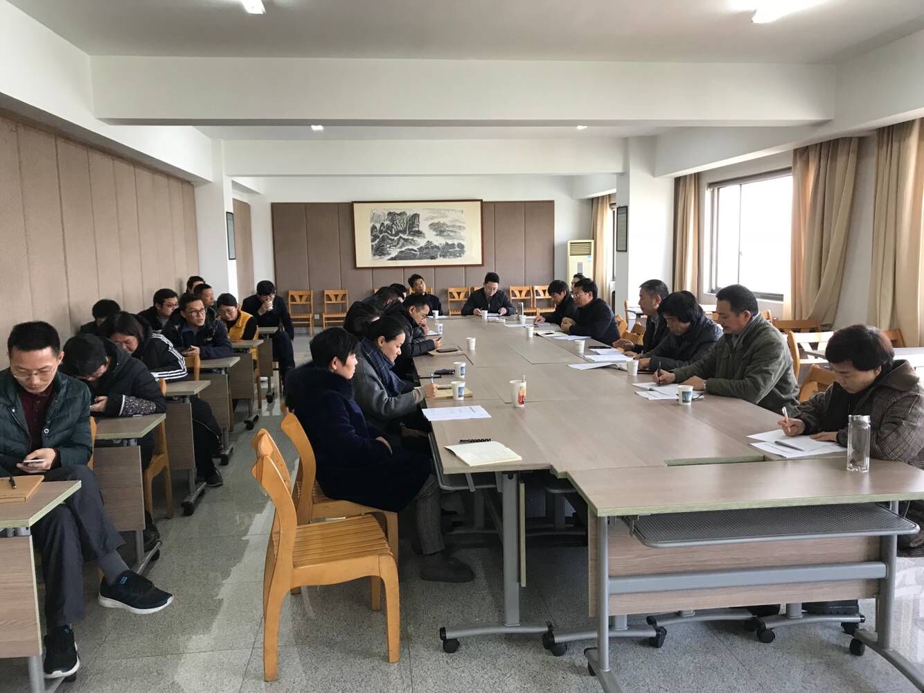 2018年12月24日下午,公司在11樓會議室召開了中層及以上管理人員會議。會議由公司副總經(jīng)理樓希龍主持。公司領(lǐng)導及二十余位中層管理人員參加會議。會議傳達了關(guān)于聘任王欣為金華市龍源建設(shè)工程施工圖審查中心主任及關(guān)于聘任葉肖為金華市建筑設(shè)計院有限公司辦公室副主任(主持工作)的決定。吳學敏總經(jīng)理就為什么調(diào)整龍源中心班子及設(shè)計公司辦公室班子、班子調(diào)整怎樣產(chǎn)生的等事項作了說明;并對兩位新調(diào)整人員提了要求;二位新提拔同志作了表態(tài)發(fā)言。會議還通報了近期重要工作。
