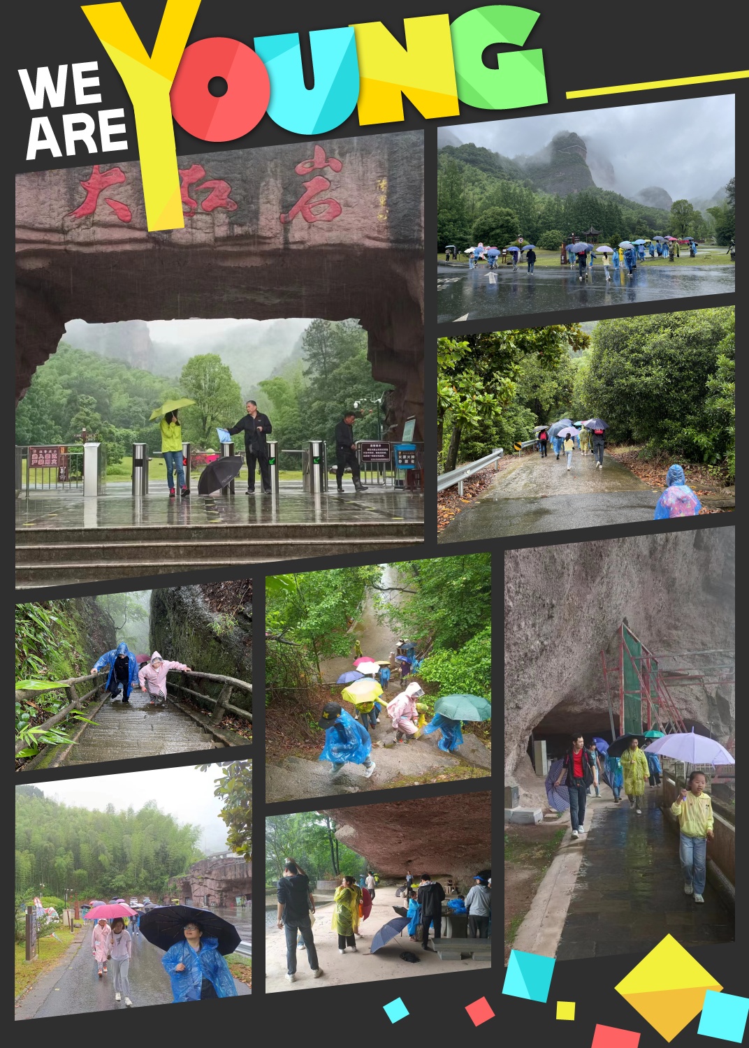 2024年6月1日,公司工會組織到大紅巖活動。大紅巖坐落于武義中部,有近15平方公里的丹霞景觀,其中高326米、寬659米的丹霞赤壁是世界最大的丹霞赤壁之一。不巧的是當(dāng)天受臺風(fēng)外圍影響,滴滴答答的中雨一直下個不停,走過幾個赤壁仿佛在水簾洞中穿梭。好在大家興致蠻高,特別是幾個小朋友勇敢地走完了全程。